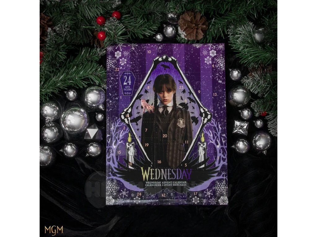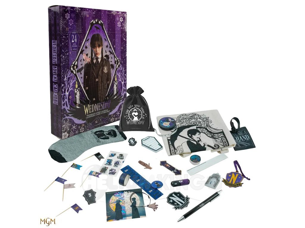 Advetní kalendář Wednesday obsahuje 24 různých dárků: ponožky, sáček se šňůrkou, maska na oči, klíčenka, zvýrazňovač, náušnice, hřeben, odrazový míček, zrcadlo, washi páska, odznak, poznámkový blok, poznámkový blok guma, špendlík, tkaná náplast, měřící páska, tácek, puzzle, vánoční ozdoba, pěnový magnet.