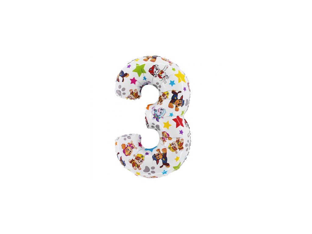 Balónek fóliový narozeninové číslo 3 bílý - Paw Patrol