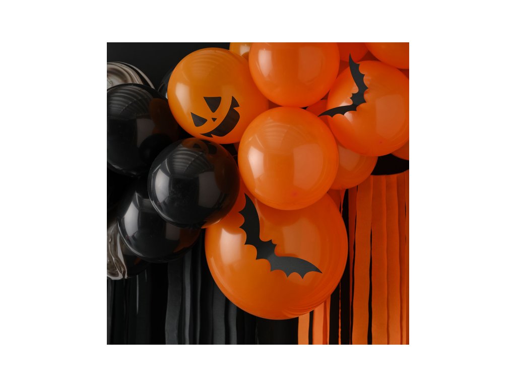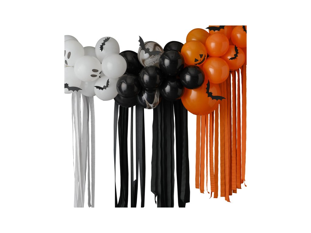 - obsah: 50 x latexový balón (mix barev - oranžové, černé, bílé), 8 x papírový netopýr, krepová stuha 60 m, kartonová balonová páska 5 m, 40 x lepicí tečka, provázek 3 m