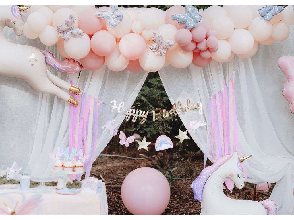Barevný narozeninový banner s nápisem Happy Birthday a motivem jednorožce je dokonalou dekorací na dětskou oslavu. Vytvoří kouzelnou atmosféru a stane se výrazným prvkem výzdoby místnosti, fotokoutičku či oslavy doma i v zahradě. Banner je dostatečně výrazný a dobře viditelný. Jednoduše jej zavěsíte na zeď, nad stůl nebo do prostoru a okamžitě tak doladíte tématickou výzdobu s motivem jednorožce. Ideální doplněk pro všechny malé princezny a milovnice pohádkového světa.