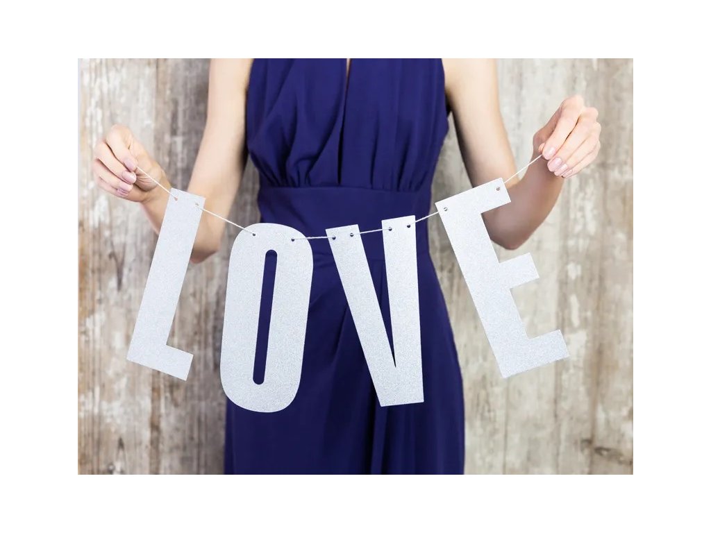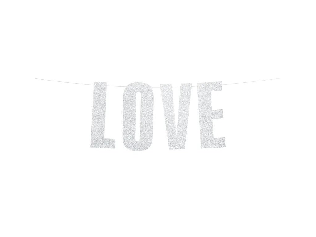 Vytvořte si pestrou párty výzdobu s bannerem LOVE. Tento třpytivý banner s nápisem se dokonale hodí na svatební párty, či valentýnskou oslavu.
