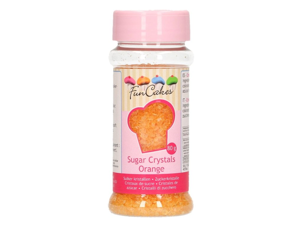 Oranžový dekorační cukr v podobě krystalků je vhodný na zdobení a dekorování dezertů, dortů, cupcakes, vdolky, dort pops a dalších krémových cukrovinek.