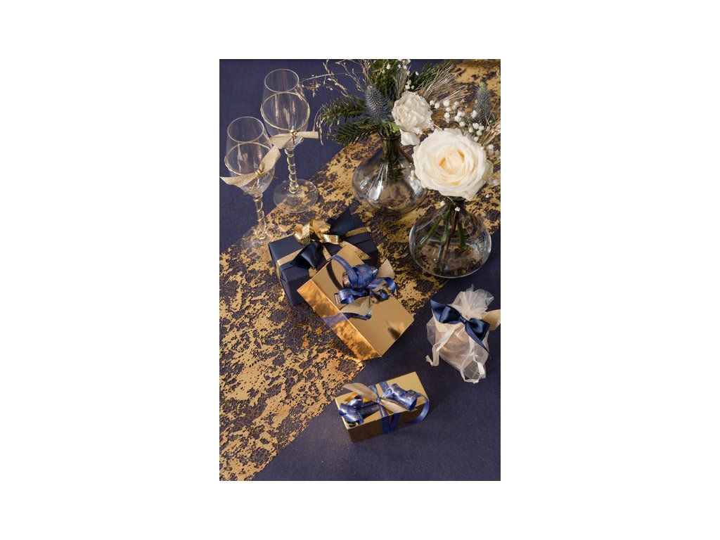 Chcete-li přidat do Vaší výzdoby něco zvláštního, elegantního a praktického, bezpochyby použijte tento běhoun, který bude středem pozornosti na Vašem slavnostním stole. Tento běhoun o rozměru 28 x 500 cm tvořící dlouhý pás se umisťuje přímo na střed stolu. Jeho účelem je zdobit a dodat stolu eleganci a styl, a je vhodný k mnoha příležitostem.