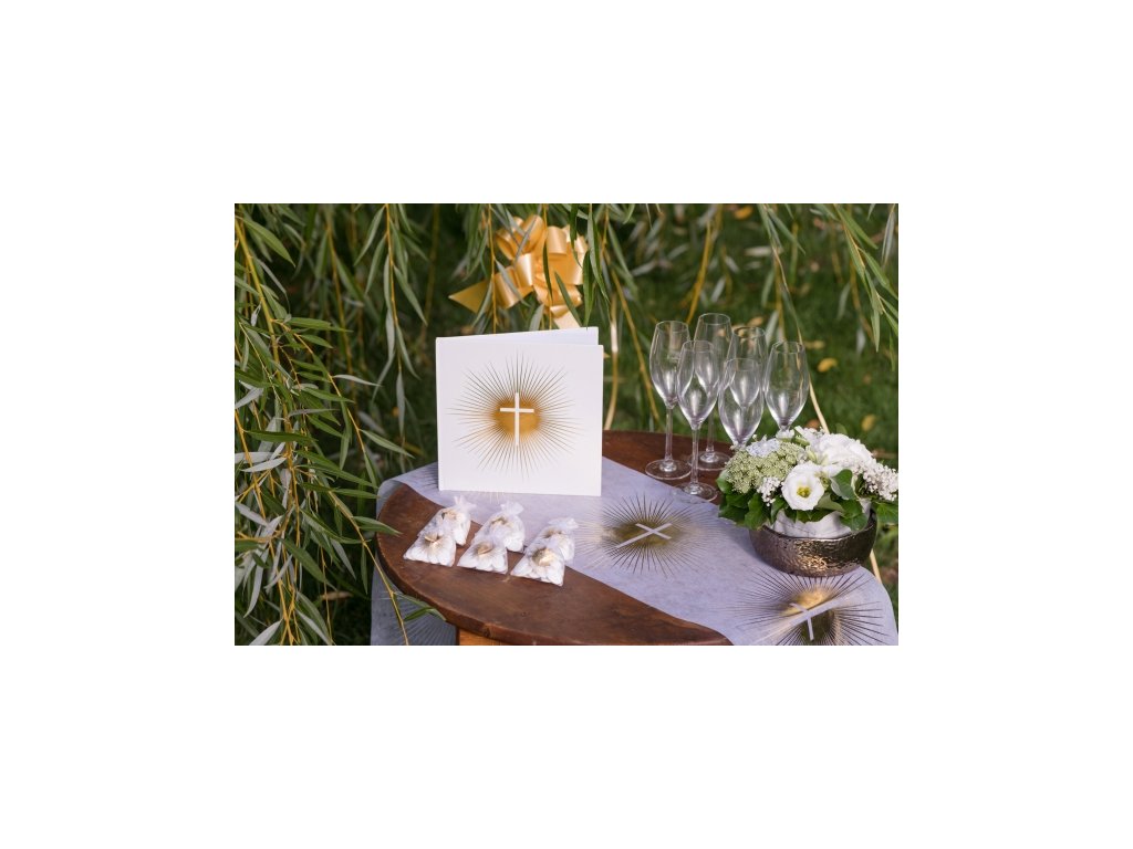 Na každé oslavě musí být originální prostírání. Zlatý ubrus bude perfektně zdobit Váš slavnostní stůl. Je ideální volbou pro oslavu prvního svatého přijímání.
