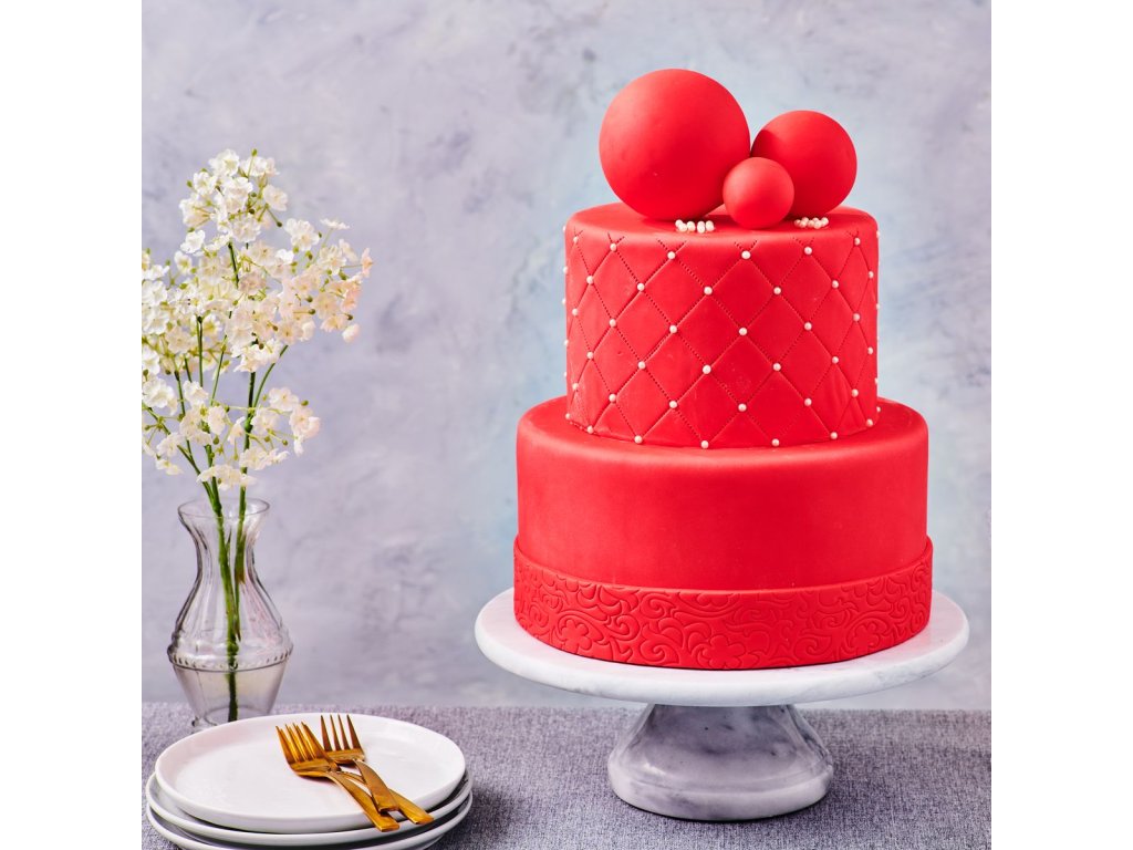 Červený rolovaný fondant je díky své struktuře flexibilní, hladký, snadno použitelný a po zpracování zcela ztvrdne. Je vhodný pro každého začátečníka i profesionálního cukráře. Z fondantu můžete snadno vytvářet různé tvary nebo dekorace. Fondán v červené barvě využijete při tvorbě slavnostních nebo elegantních dortů.