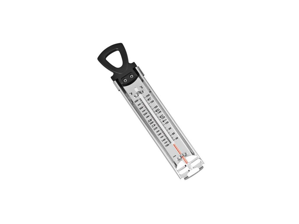 Cukrářský teploměr určený ke kontrole teploty tání čokolády, krémů, marmelád, džemů, sirupů, omáček a mnoho dalšího. Praktická a užitečná pomůcka pro všechny milovníky výroby domácí čokolády. Teploměr měří teplotu od 40-200°C .