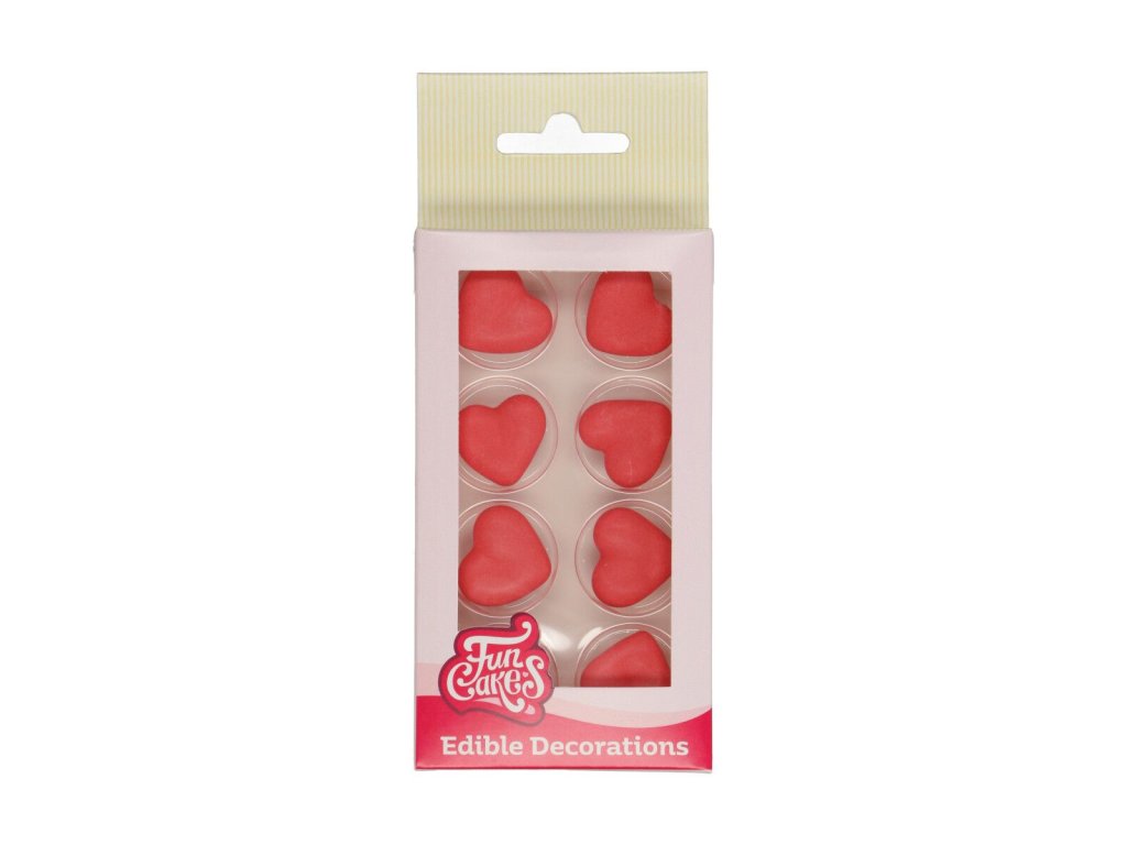Cukrová dekorace - Set červených srdcí 8 ks