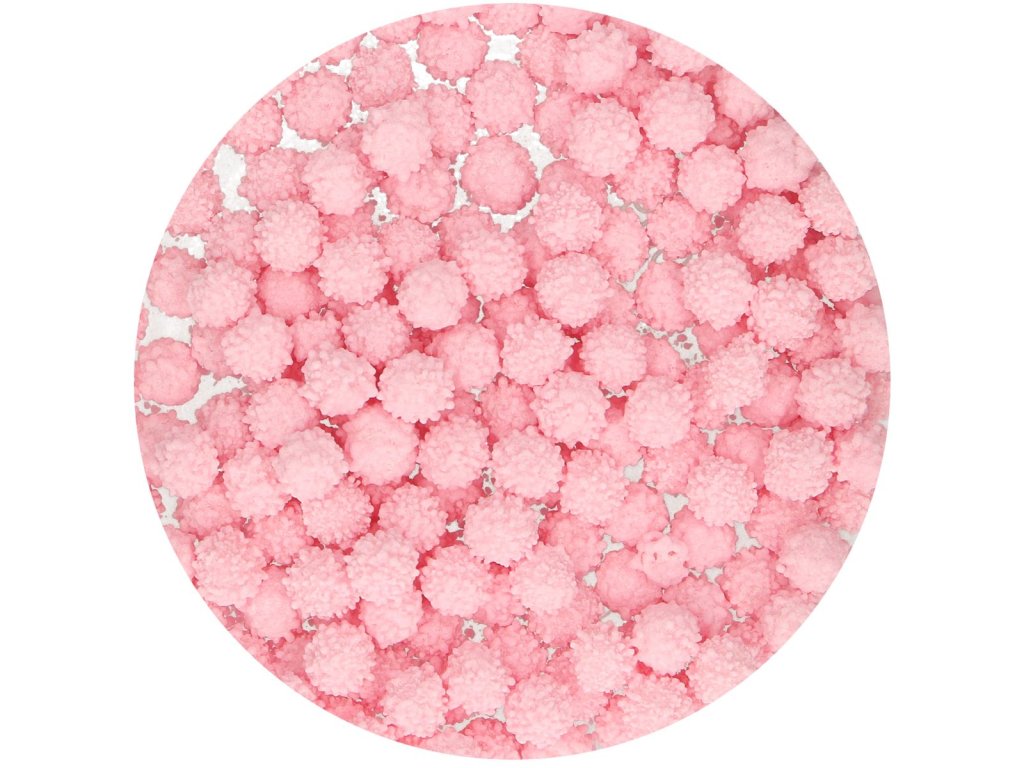 Růžové jedlé kuličky využijete při dekorování slavnostních, svatebních a elegantních dortů. Lze jimi dekorovat například. obvod dortu nebo vytvořit cukrový řetěz.