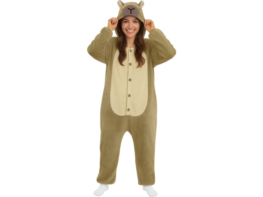 Měkoučký materiál, vtipné detaily a pohodlný střih vám umožní užívat si zábavu naplno – přesně tak, jak to umí jen kapybara! Stačí si ho obléct, nasadit úsměv a připravit se na vlnu dobré nálady. S tímto kostýmem se stanete královnou pohody a zábavy!
