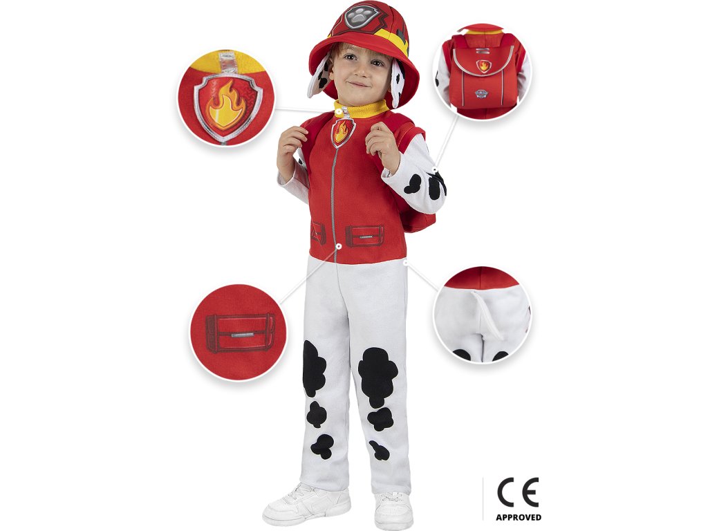 Připravit se, pozor, Paw Patrol vyráží do akce! S dětským kostýmem Marshall se tvůj malý hrdina během chvilky promění v nejodvážnějšího hasičského pejska ze slavné Tlapkové patroly.