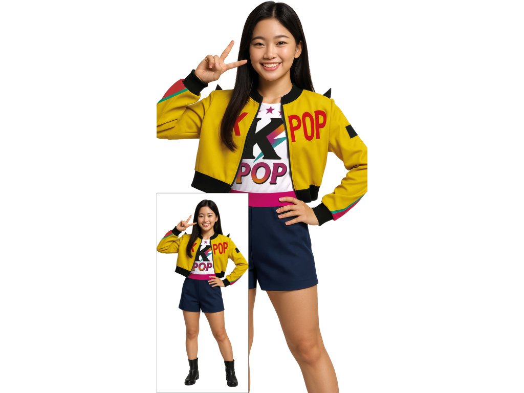 Staň se hvězdou tanečního parketu, rozjeď to na každé party a ukaž všem, že v tobě dřímá pravý KPOP idol! Kostým Rumi je ideální pro všechny odvážné dívky, které milují dobrodružství, rytmus a chtějí se cítit jako členka týmu HUNTR/X v boji proti démonům – samozřejmě se špetkou zábavy a stylu!