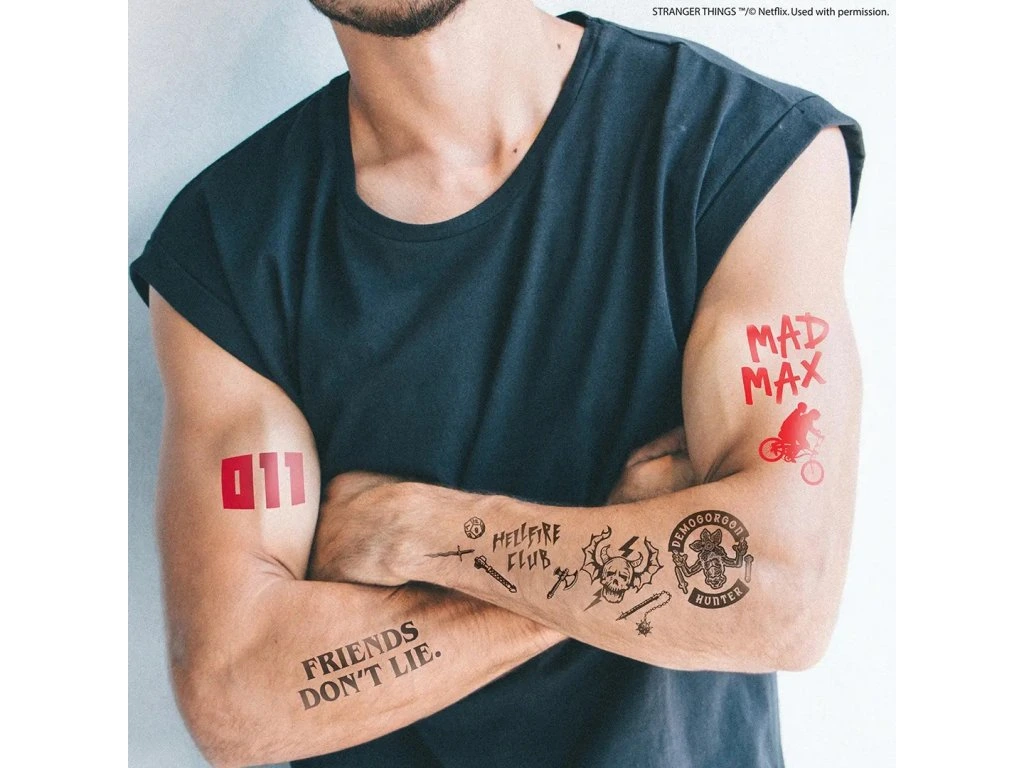 Nalep si tetování, ukaž ho kamarádům a staň se hvězdou každé party či festivalu. Je to jednoduché, bezpečné a hlavně – když tě omrzí, stačí ho smýt a můžeš zkusit další design. Tak co, jsi připravený/á na trochu nadpřirozené zábavy? Hawkins tě volá!