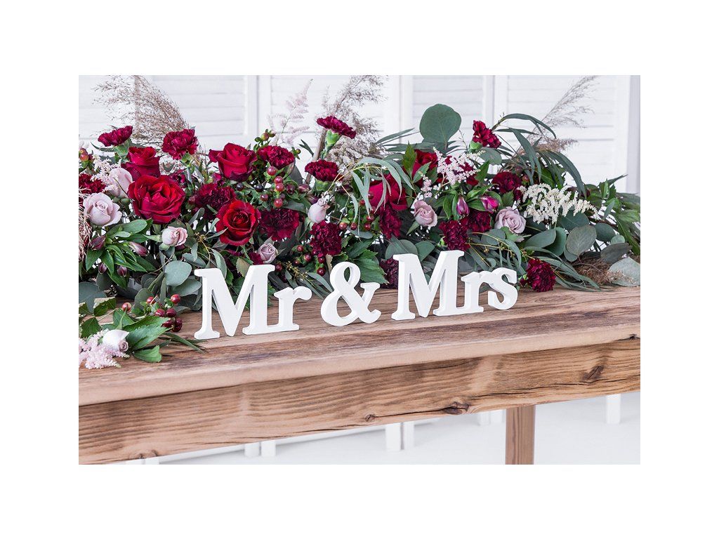 Udělejte svůj stůl při prostírání jedinečným, pomocí i touto dřevěnou dekorací Mr & Mrs.