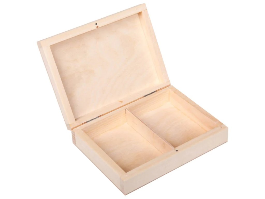 Stylově elegantní dřevěná krabička na svatební obroučky dotvoří jedinečnou atmosféru velkého okamžiku ve Váš svatební den. Box v přírodním provedení má dvě oddělené přihrádky a je uzavřen díky magnetům.