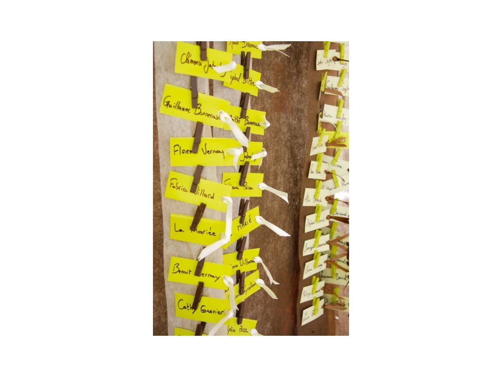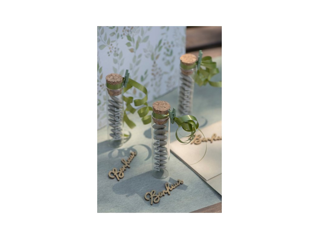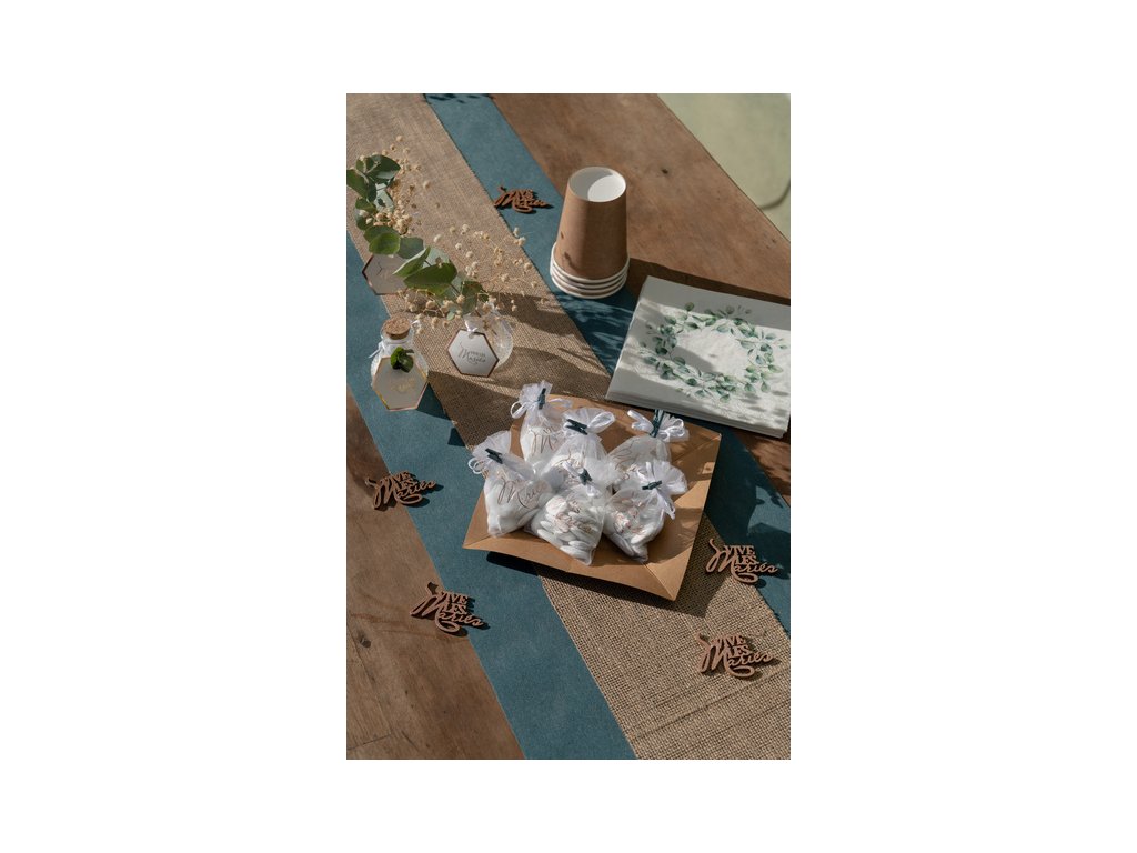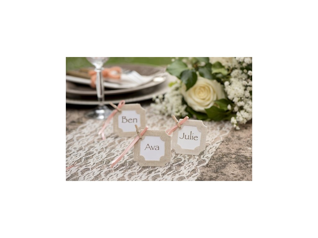 Dřevěné dekorační kolíčky v přírodních barvách se používají k připevnění různých odkazů, fotografií a dekorací.