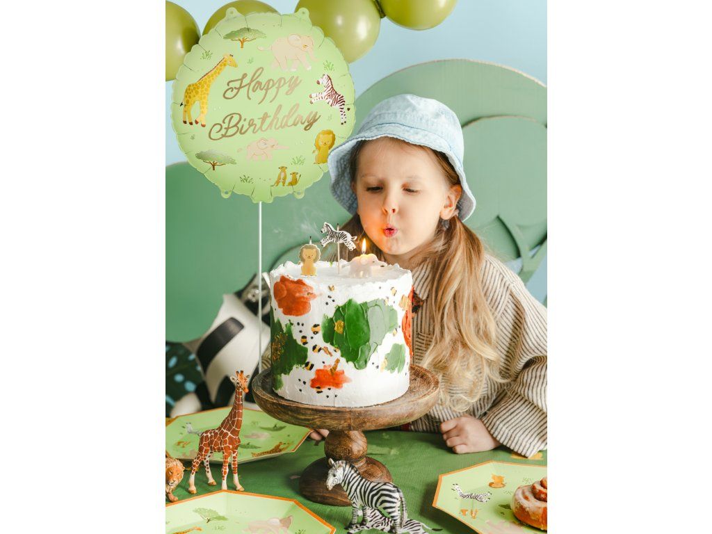 Fóliový balón Happy Birthday Safari s průměrem 35 cm je veselá dekorace, která skvěle oživí každou narozeninovou oslavu. Barevný motiv safari v kombinaci s nápisem „Happy Birthday“ vytváří hravou atmosféru, ideální pro dětské párty i tématické oslavy. Balón je určený k plnění vzduchem nebo heliem a po nafouknutí si dlouho zachová svůj tvar i barvy. Perfektně se hodí jako samostatná dekorace nebo součást větší balónkové výzdoby.
