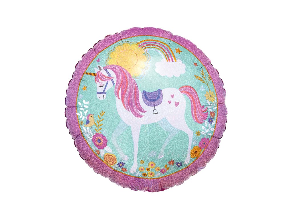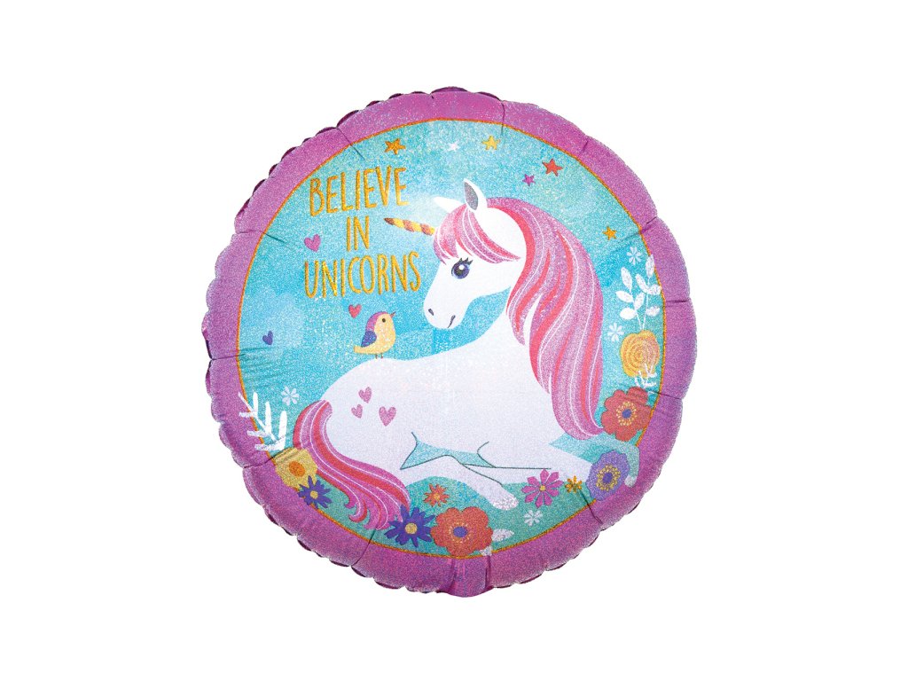 Fóliový balón - Holografický jednorožec, kruh 43 cm