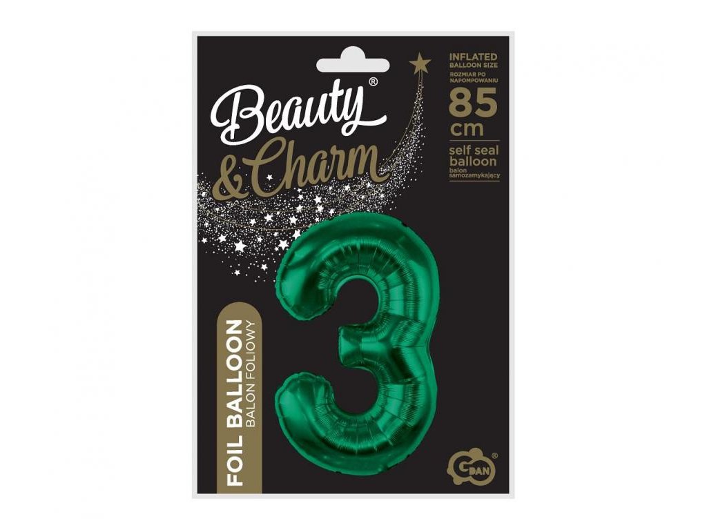 Fóliový balónek - číslo 3, tmavě zelený 85 cm