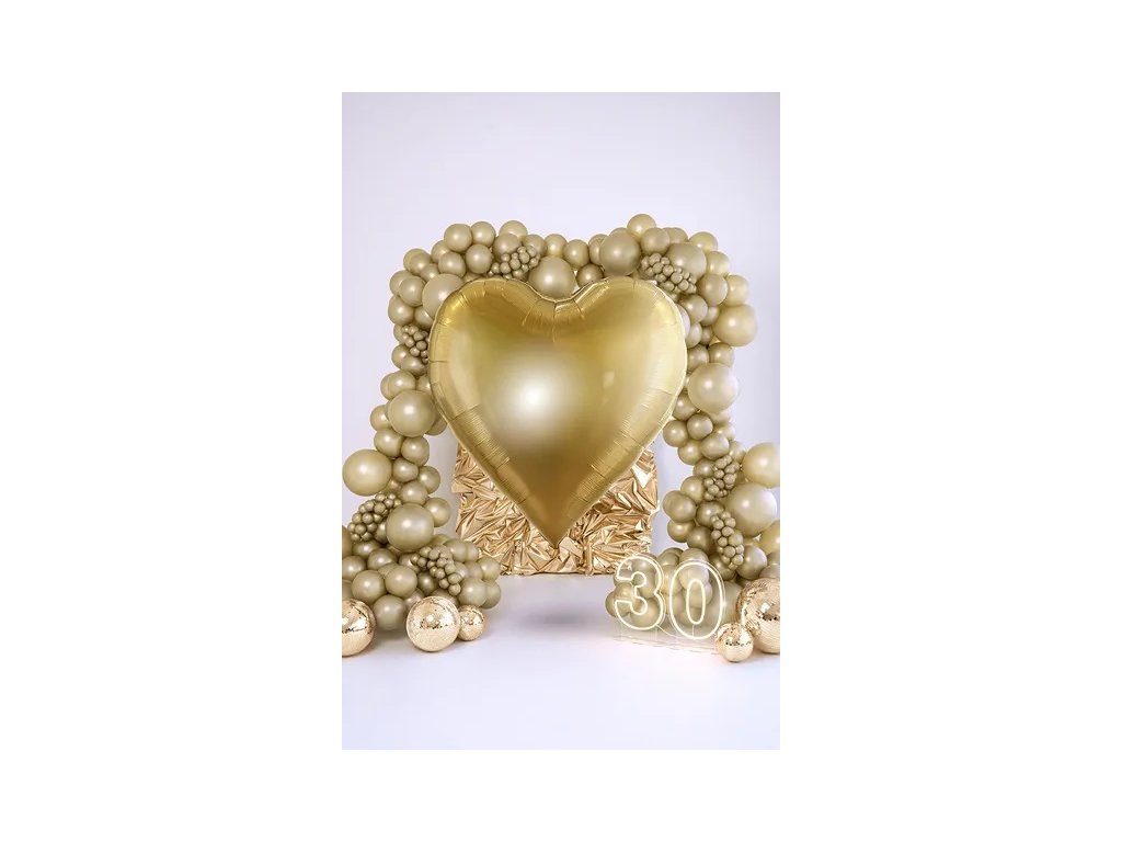 Zazářete na každé oslavě s tímto obrovským zlatým srdcem! Fóliový balónek XXL ve tvaru srdce (136 x 129 cm) je přesně to, co potřebujete, abyste rozpoutali zábavu a rozveselili všechny hosty.