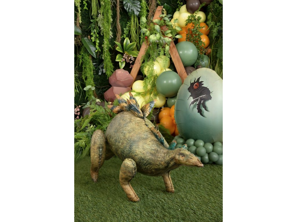 Velká stojací fóliová balónková dekorace s motivem dinosaura Stegosaura v zeleno-hnědém provedení je ideální na dětskou párty s tématikou Jurassic World. Balónek po nafouknutí samostatně stojí a vytvoří výraznou dekoraci oslavy. Skvělá dekorace na tematické oslavy a narozeniny pro malé milovníky dinosaurů.