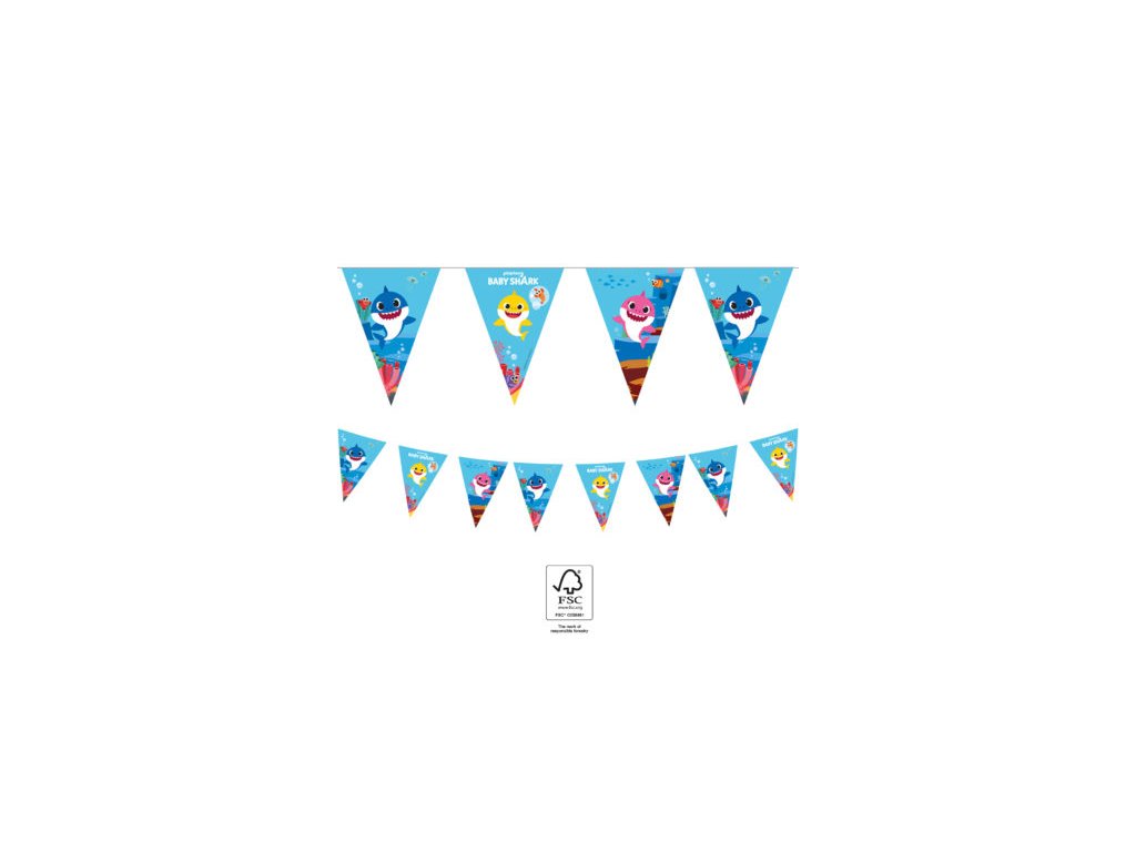 Girlanda na téma Baby Shark Vám může pomoci při party výzdobě. Bez girlandy se neobejde žádná oslava narozenin. Tato barevná party dekorace se hodí na dětskou narozeninovou oslavu nebo dětskou párty.