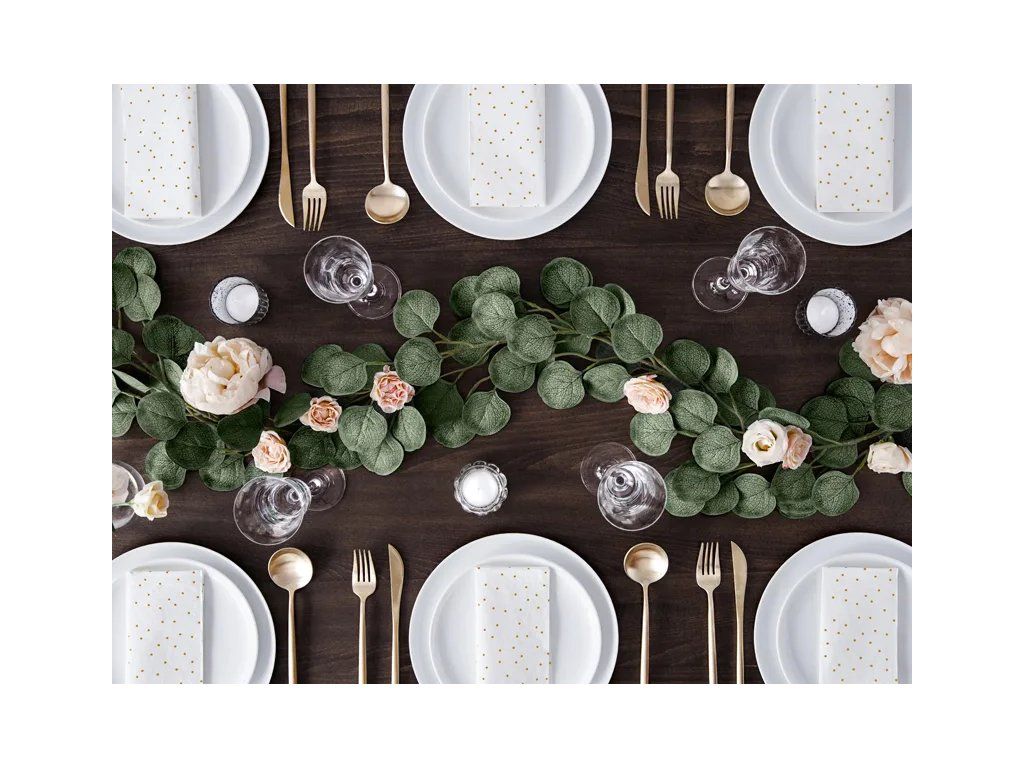 Originální dekorace se kterou doplníte svoji svatební výzdobu ve stylu vintage či green. Narozdíl od živého eukalyptu můžete girlandu použít opakovaně.