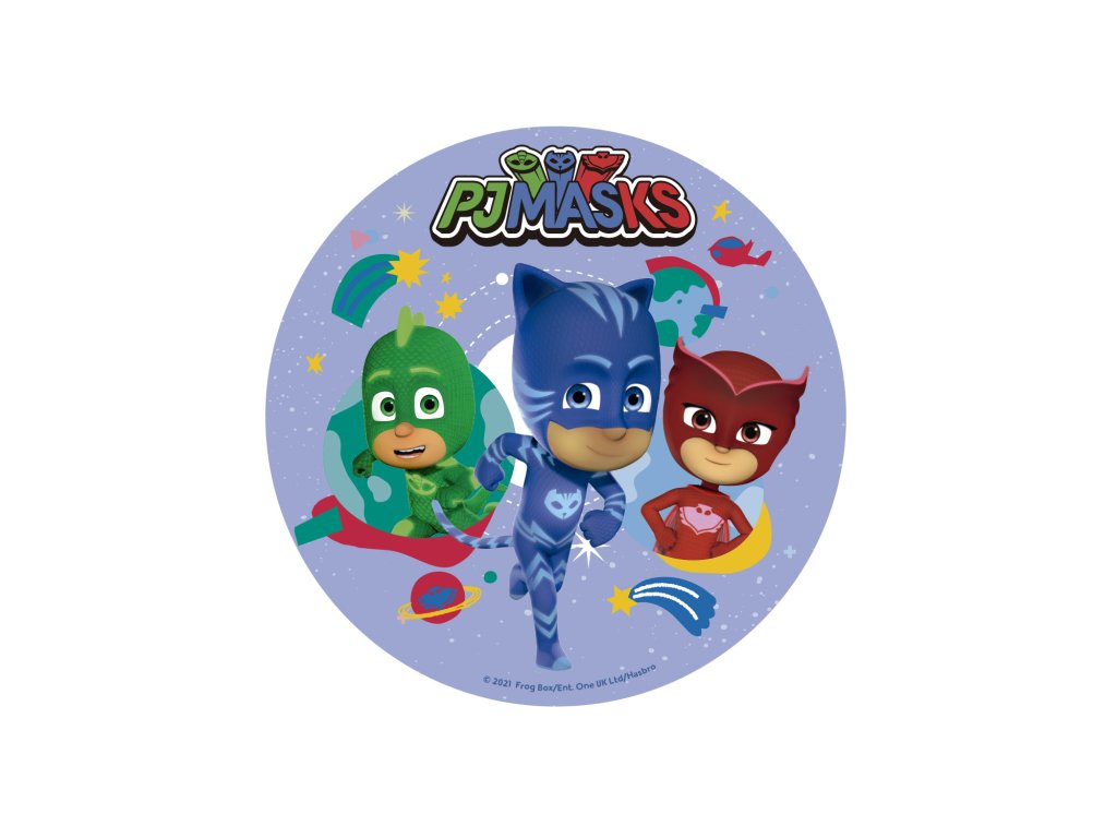 Jedlý papír s motivem PJ Masks bude perfektním doplňkem dětského narozeninového dortu. Papír vynikne na světlých krémových i potahovaných dortech. Produkt neobsahuje lepek, laktózu, cukr a je vhodný pro vegetariány.