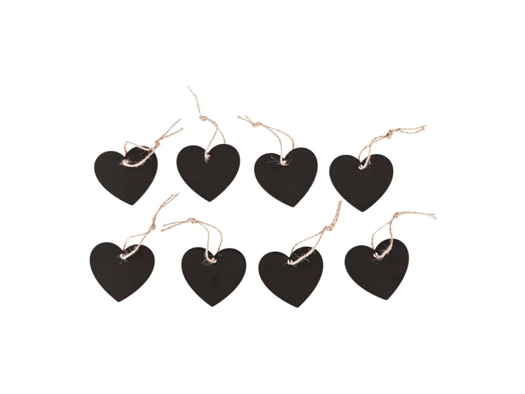 Jmenovky se šňůrkami - Černé srdce 8 ks