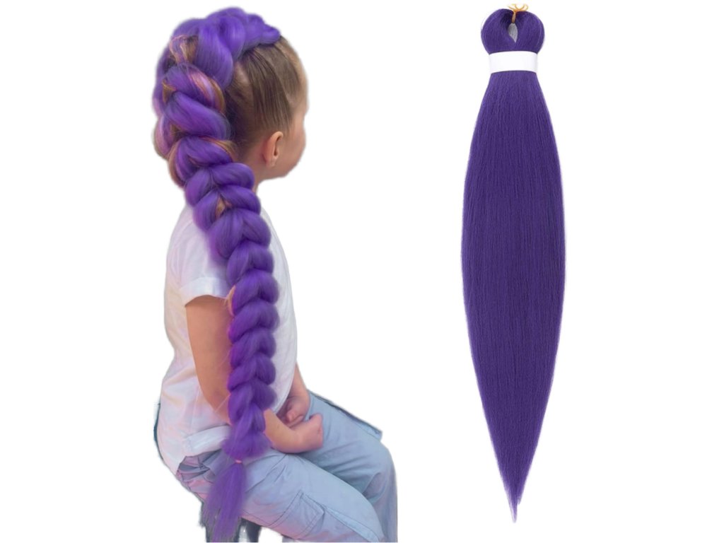 K-POP fialové syntetické vlasy na zaplétání 60 cm