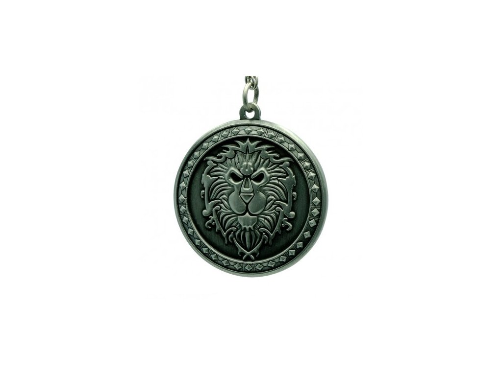 Kovová klíčenka s reliéfním znakem Stormwind Lion z populární fantasy videohry World of Warcraft. Je to skvělé poznávací znamení pro ostatní hráče.