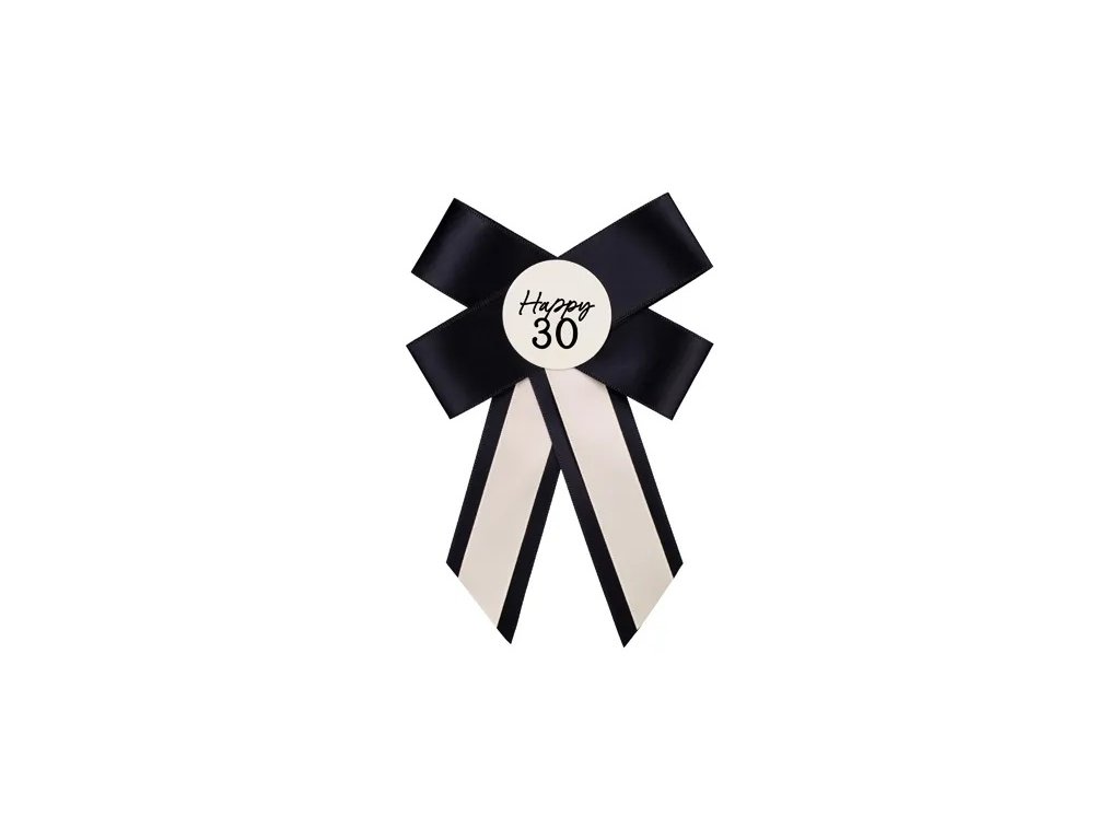 Tridsiatka na krku? To si pýta poriadnu oslavu! S touto krémovo-čiernou kokardou bude každý vedieť, kto je dnes hlavná hviezda večera. Pripni si ju na hruď, darček alebo rovno na tortu (ale pozor na šľahačku!) a ukáž všetkým, že 30 je len číslo – a poriadne okrúhle! Táto veselá kokarda rozprúdi zábavu, rozosmeje aj tých najväčších škarohlídov a dodá tvojej párty šmrnc, aký si zaslúži. Tak hurá do oslavy – veď tridsiatka je len začiatok ďalšieho dobrodružstva!