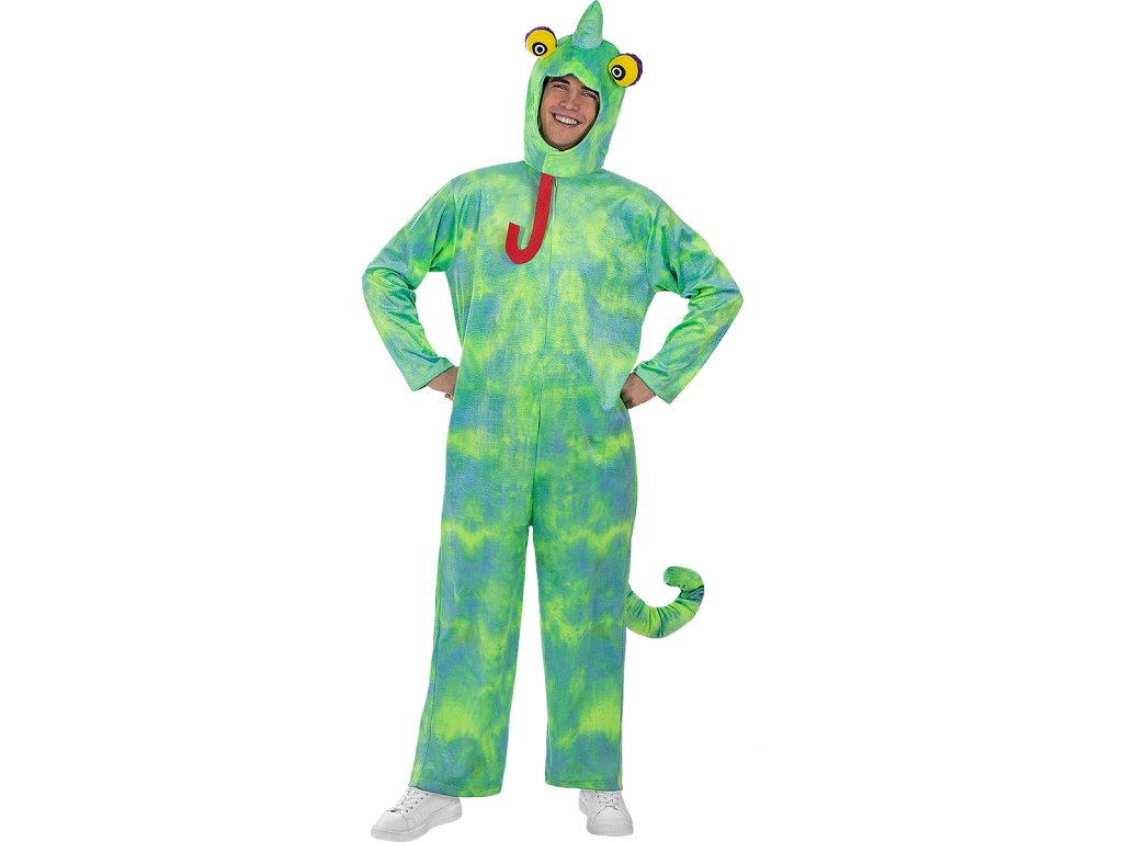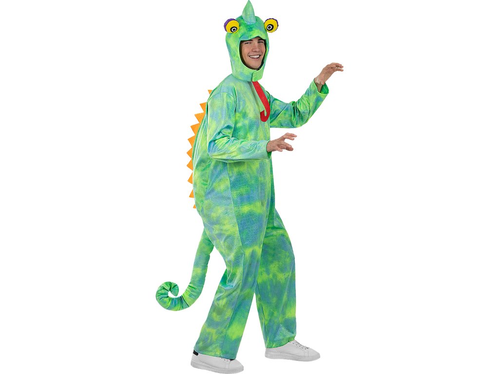 Připravte se na to, že se stanete mistrem maskování a králem večírků s naším chameleonským kostýmem! Tato úžasná kombinéza s ocasem a čelenkou vás promění ve skutečného chameleona, který se dokáže přizpůsobit každé zábavě.