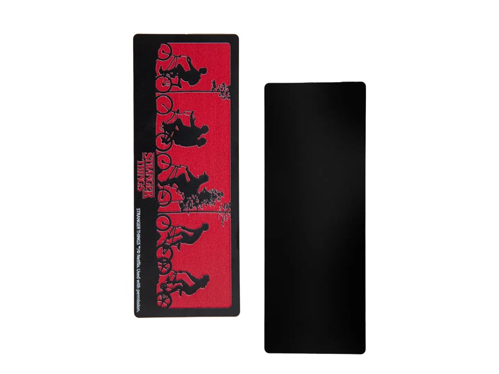Ztratili jste se už někdy ve světě knih stejně, jako se děti ze Stranger Things ztratily v Upside Down? S touto stylovou kovovou záložkou s ikonickými siluetami vašich oblíbených hrdinů se vám to stane ještě raději! Ať už právě bojujete s Demogorgonem, nebo jen hledáte, kde jste včera přestali číst, tato záložka vám vždy ukáže správný směr. Je pevná, odolná a tak cool, že by ji určitě chtěl i sám Dustin! Připravte se na dobrodružství – s touto záložkou vás Upside Down jen tak nepřekvapí!