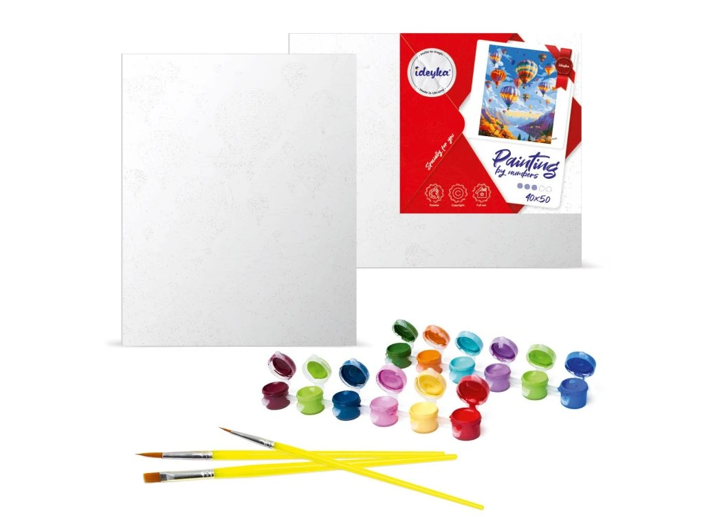 ✅ Predkreslené plátno na ráme (40 x 50 cm) s očíslovanými políčkami