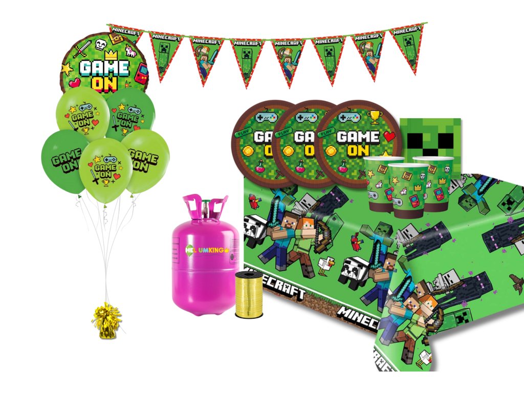 Vytvořte si pohádkovou narozeninovou párty ve stylu hry Minecraft s kompletní sadou produktů! Balóny, helium a párty stolování, vše v tematickém duchu pohádky, aby vaše oslava byla jedinečná. V narozeninové sadě máte vše, co potřebujete k vytvoření nezapomenutelného narozeninového zážitku!