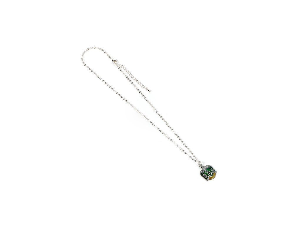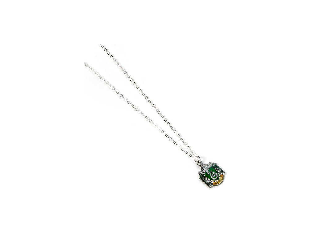 Řetízek ve stříbrné barvě s přívěskem Fakulty Zmijozelu se bude perfektně vyjímat na krku každého čaroděje, který má v oblibě tuto vychytralou fakultu Bradavic.