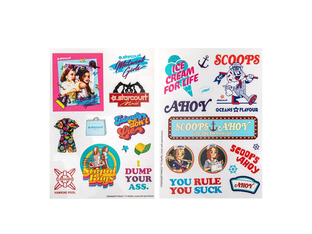 Připrav se na pořádnou dávku dobrodružství z Hawkinsu! S těmito nálepkami ze 3. série Stranger Things můžeš ozdobit sešit, mobil, notebook nebo cokoli, co potřebuje trochu více stylu 80. let a tajemnou atmosféru. Dustin, Eleven, Demogorgon či zmrzlinový stánek Scoops Ahoy – všichni čekají, až je nalepíš na své oblíbené věci. Vstup do světa, kde je všechno možné, a ukaž všem, že jsi opravdový fanoušek Stranger Things!