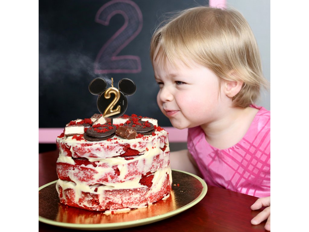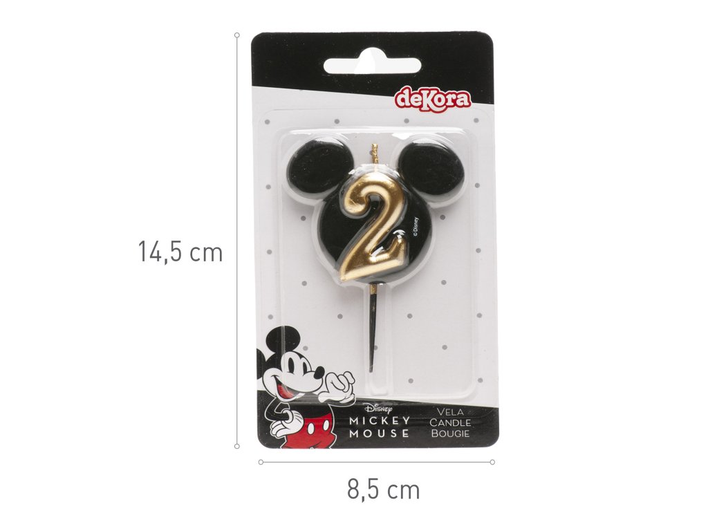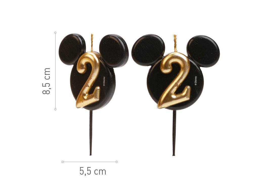 Štýlová a originálna sviečka s číslom 2 v dizajne ikonickej hlavičky Mickey Mousa! Elegantná kombinácia čiernej a zlatej farby dodá tortám luxusný vzhľad a poteší malých aj veľkých fanúšikov Disney.