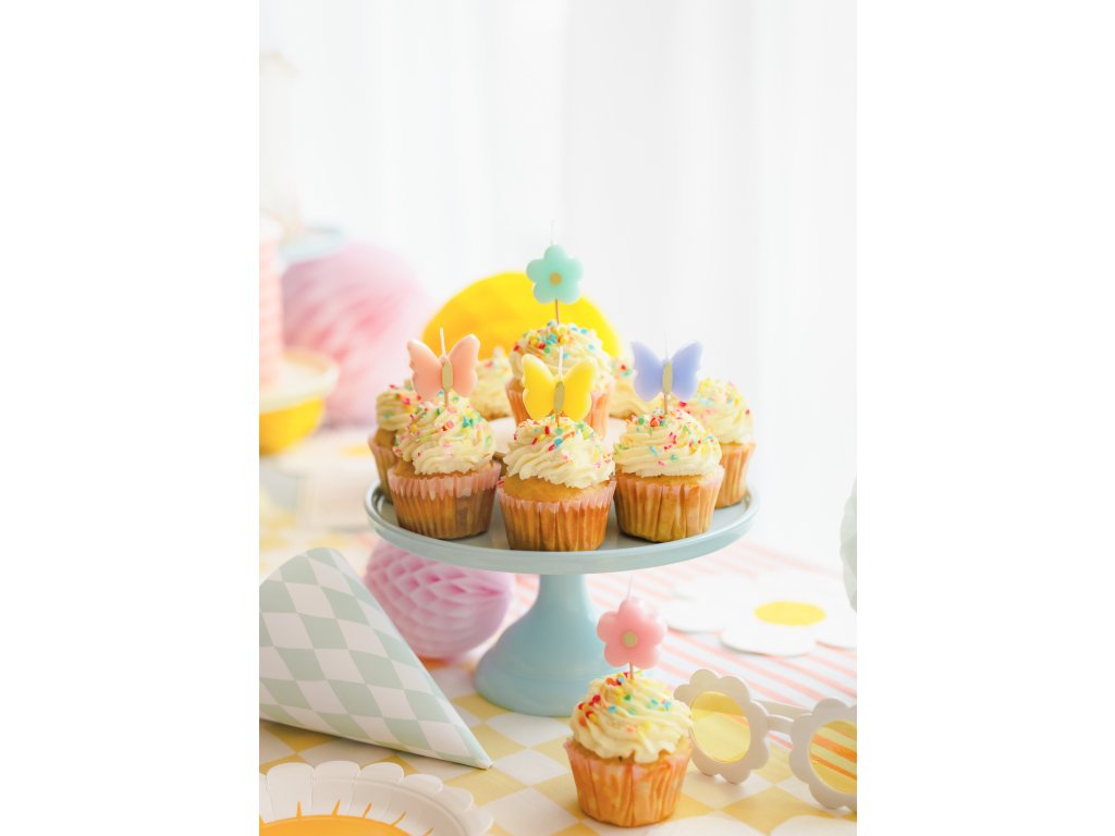Jemné narozeninové svíčky ve tvaru motýlů krásně doplní dort na dětské oslavě, křtinách nebo jarní párty. Díky elegantnímu designu dodají dezertům romantický a slavnostní vzhled. Balení obsahuje 5 kusů svíček, které se díky praktickému zápichu snadno umístí na dort či cupcakes. Jsou ideální volbou pro všechny, kdo chtějí vytvořit stylovou a barevně sladěnou výzdobu.