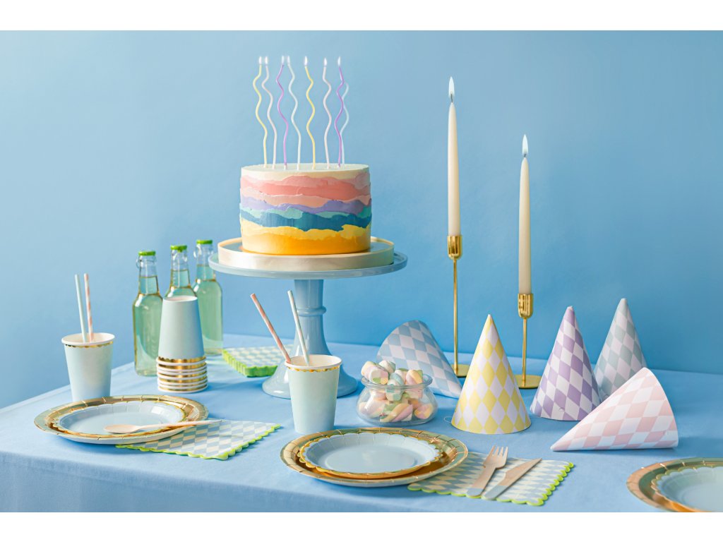 Barevné narozeninové svíčky v mixu pastelových barev dodají dortům a dezertům veselý a hravý vzhled. Svíčky jsou zakončeny praktickými držáky, které usnadňují jejich zapíchnutí do dortu.