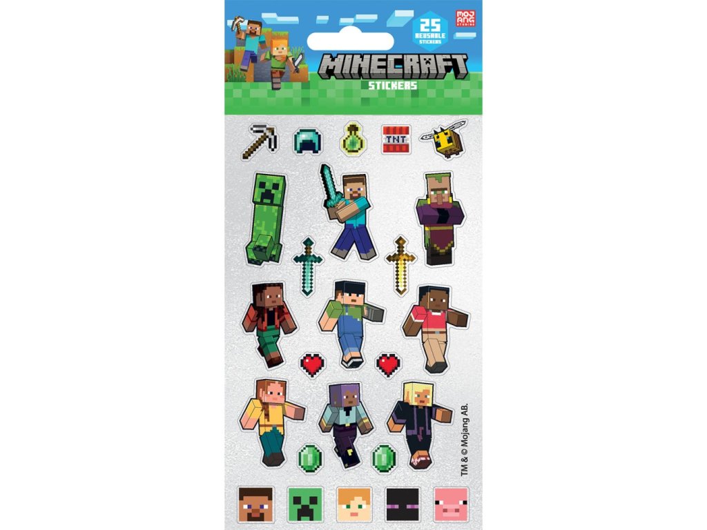 Ozdobte své věci nebo vytvořte kreativní dekorace s opakovaně použitelnými samolepkami Minecraft. Tato sada obsahuje 25 samolepek s motivy oblíbených postaviček a předmětů ze světa Minecraftu, které děti i fanoušci hry jistě ocení.