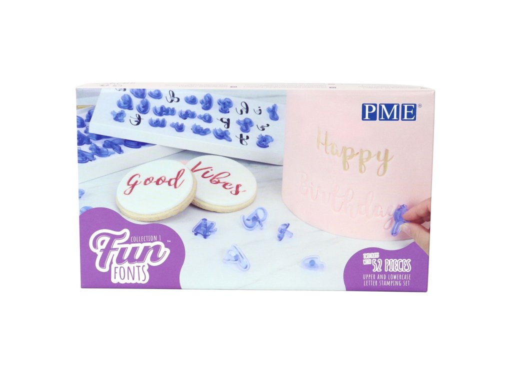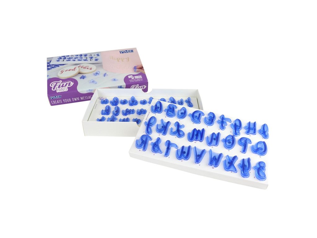 Vytvářejte personalizované dorty a zákusky pomocí ozdobné abecedy, která je vyrobena z bezpečného potravinářského plastu. Razítka je možné použít na marcipán, fondán, gumpasty, modelovací hmoty a čokolády. Reliéfní písmen lze po odtlačení vybarvit potravinářskými barvivy, jedlými fixy nebo pery.