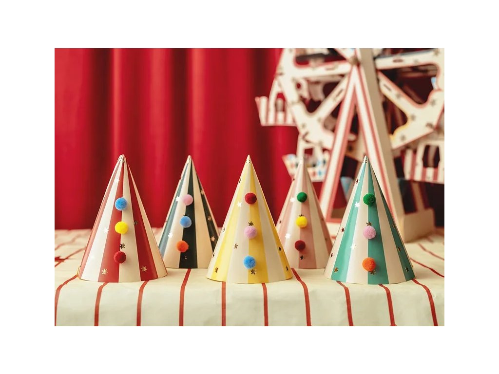 Rozjeďte párty na plné obrátky s našimi bláznivými párty kloboučky Cirkus mix! V balení najdete 6 barevných kousků, které promění každou oslavu v cirkus plný smíchu, radosti a balónkové nálady. Stačí nasadit klobouček a hned jste připraveni na kouzelnické triky, žonglování s zákusky i taneční čísla s dortem! Ať už jste malý oslavenec nebo velký bavič, s našimi kloboučky se každý stane hvězdou cirkusového šapitó. Oslavte narozeniny stylově – a hlavně s úsměvem od ucha k uchu!