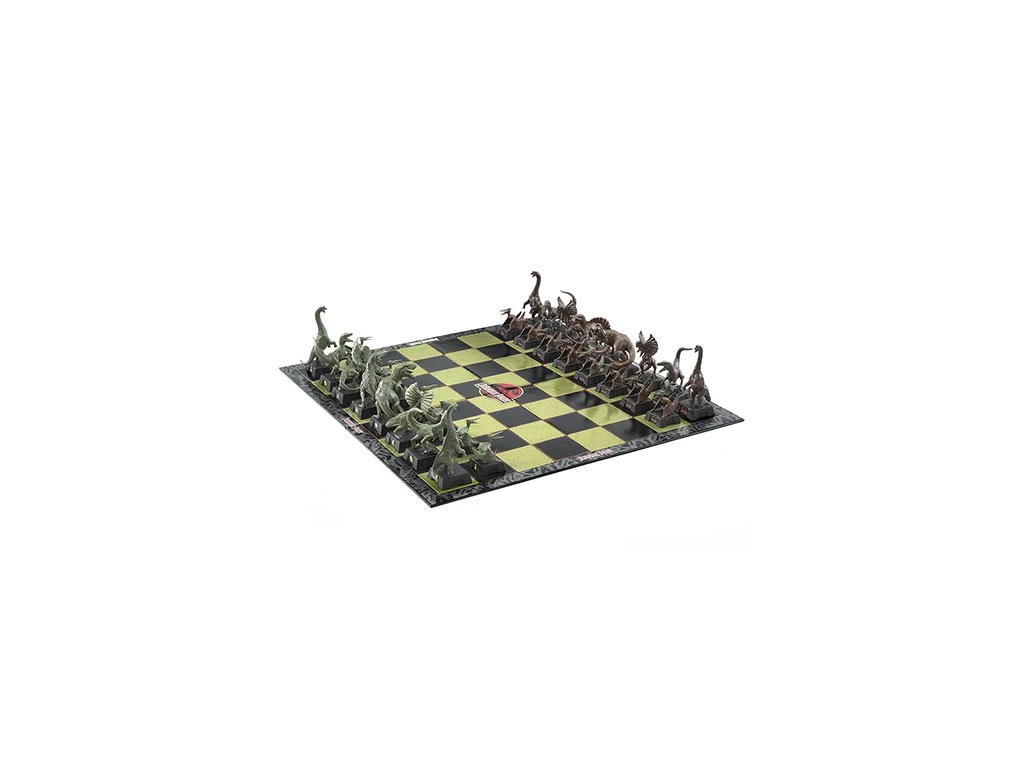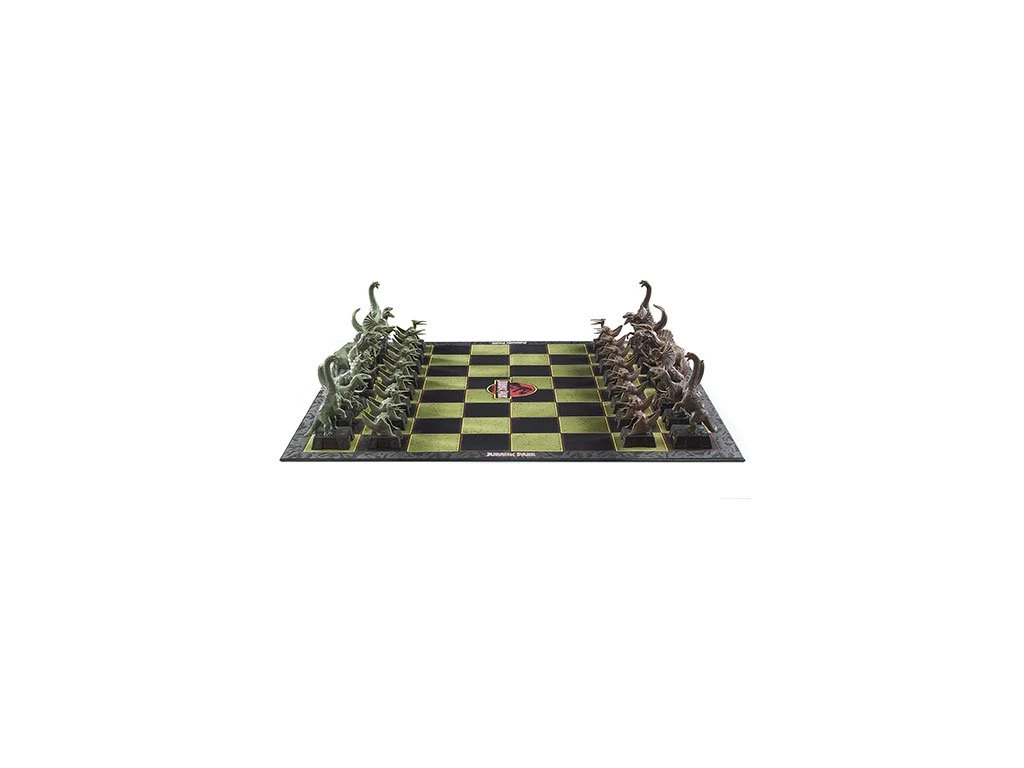Šachy ze série Jurského Parku, Vás přenesou do světa přehistorických zvířat a také potrénovat logické myšlení. Šachová sada obsahuje 32 ks precizně vyobrazených figurek nejznámějších dinosaurů a desku z lepenky. Král je samozřejmě Tyrannosaurus Rex, Královna Spinosaurus, střelci jsou Dilophosauři, jezdci jsou Velociraptoři, věže Brachiosauři a pěšáci Pteranodoni.