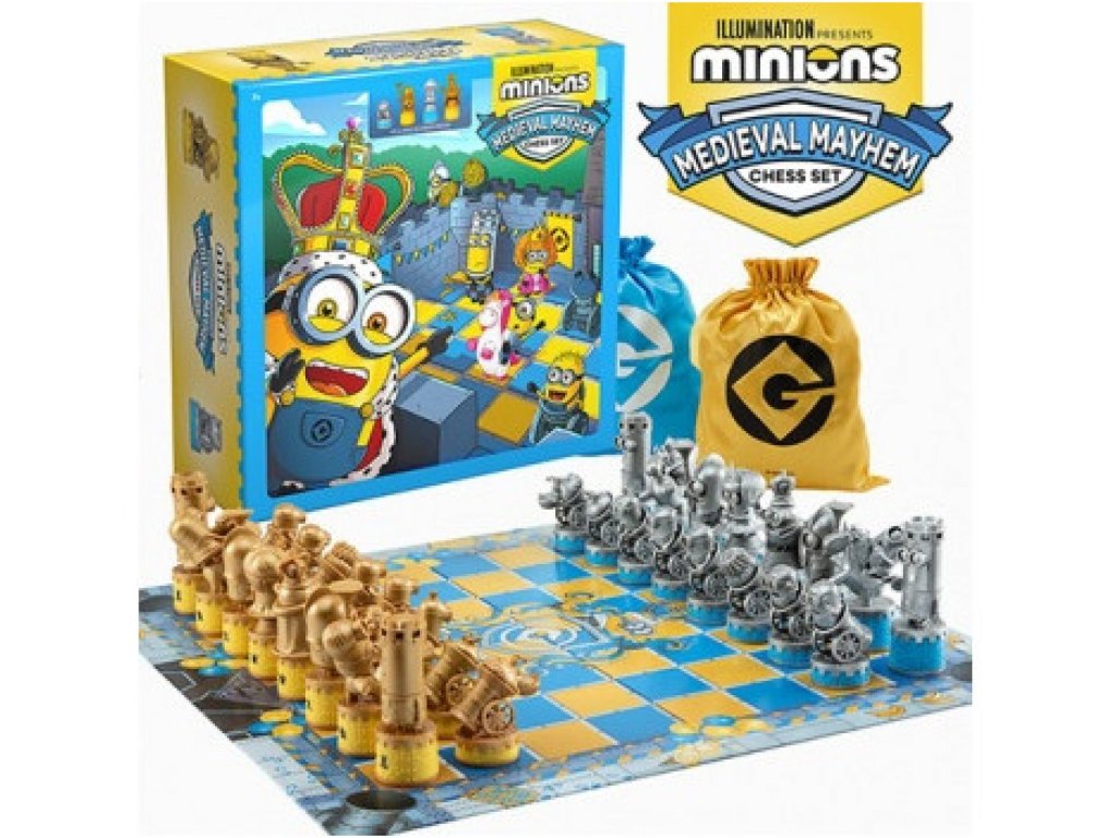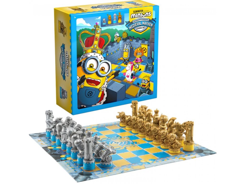 Šachy ze série Mimoni, Vás přenese do světa pohádky a zároveň potrénuje taktické myšlení. Šachová souprava obsahuje 32 ks precizně vyobrazených figurek nejznámějších mimoňů.