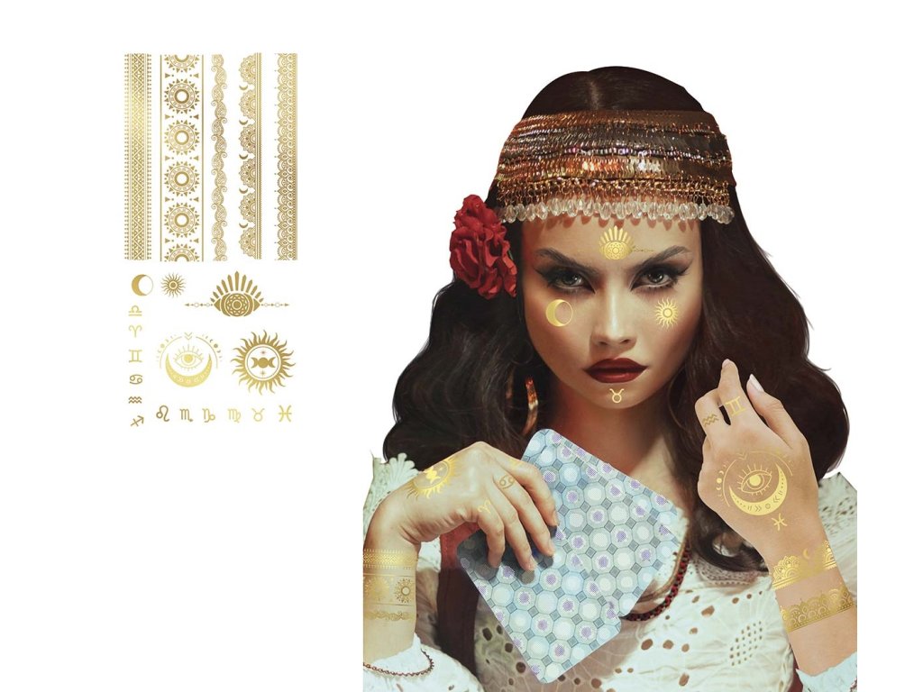 Váš karnevalový či Halloweenský kostým může působit důvěryhodněji i díky různým doplňkům jako jsou zlaté tetování.