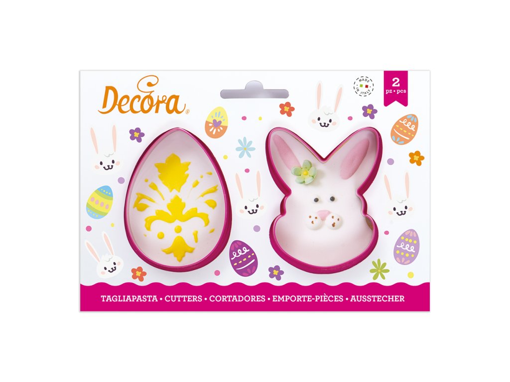 Sada vykrajovátek ve tvaru zajíčka a velikonočního vajíčka obsahuje 2 ks a je vyrobena z plastu. Výrobky z ní budou perfektně zdobit velikonoční dorty a zákusky. Je vhodná nejen na vykrajování z fondánu a marcipánu ale iz perníkových, Sušenkové nebo lineckého cest.