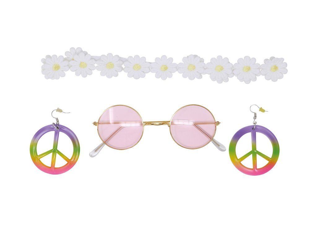 Váš karnevalový či Halloweenskej kostým, může působit důvěryhodnější i díky různým doplňkům jako je například tento Hippies set. Tento doplněk se hodí k různým karnevalovým kostýmům ve stylu Hippies, samozřejmě využití necháváme na Vaší představivosti.