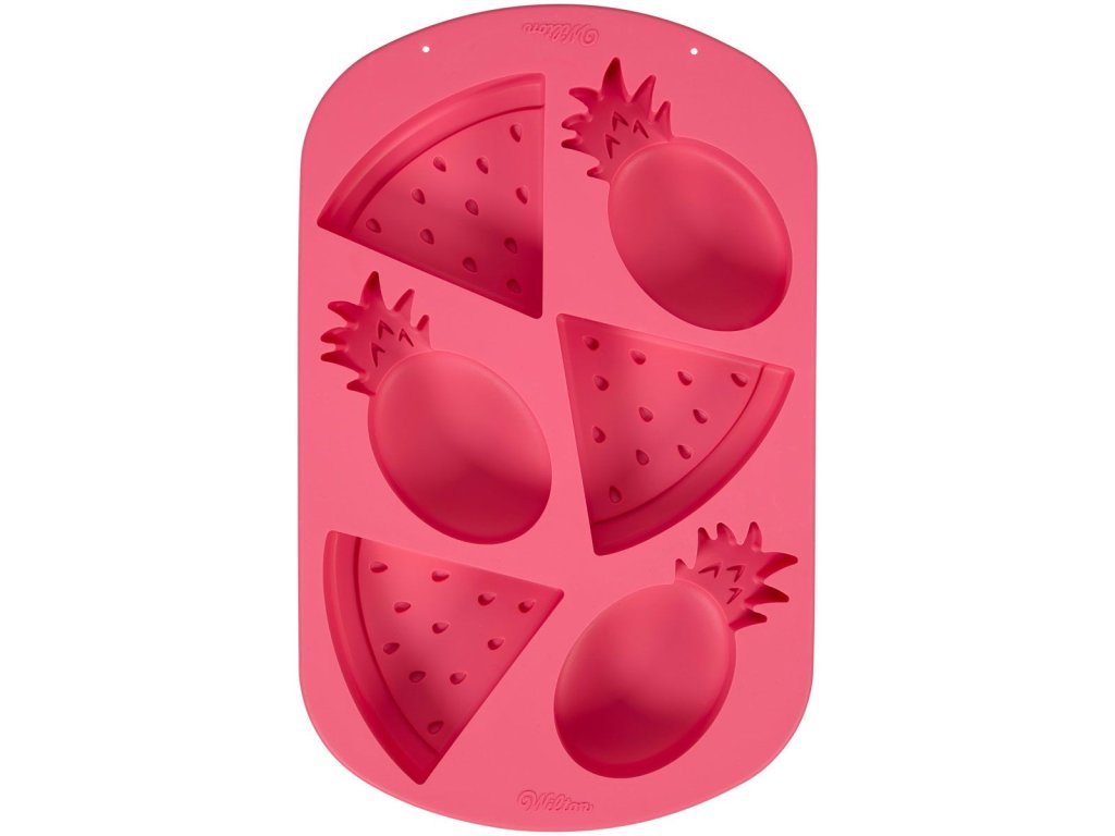 Tato silikonová forma na cukroví je ideální na tropickou párty! S touto formou můžete připravit ananasové a melounové figurky z roztopené čokolády. Figurky budou vypadat skvěle na tropických dortech, cupcacích a jiných pamlscích.