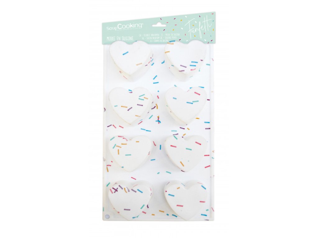 Silikonová forma na pečení barevná - Srdce Funfetti 8 ks